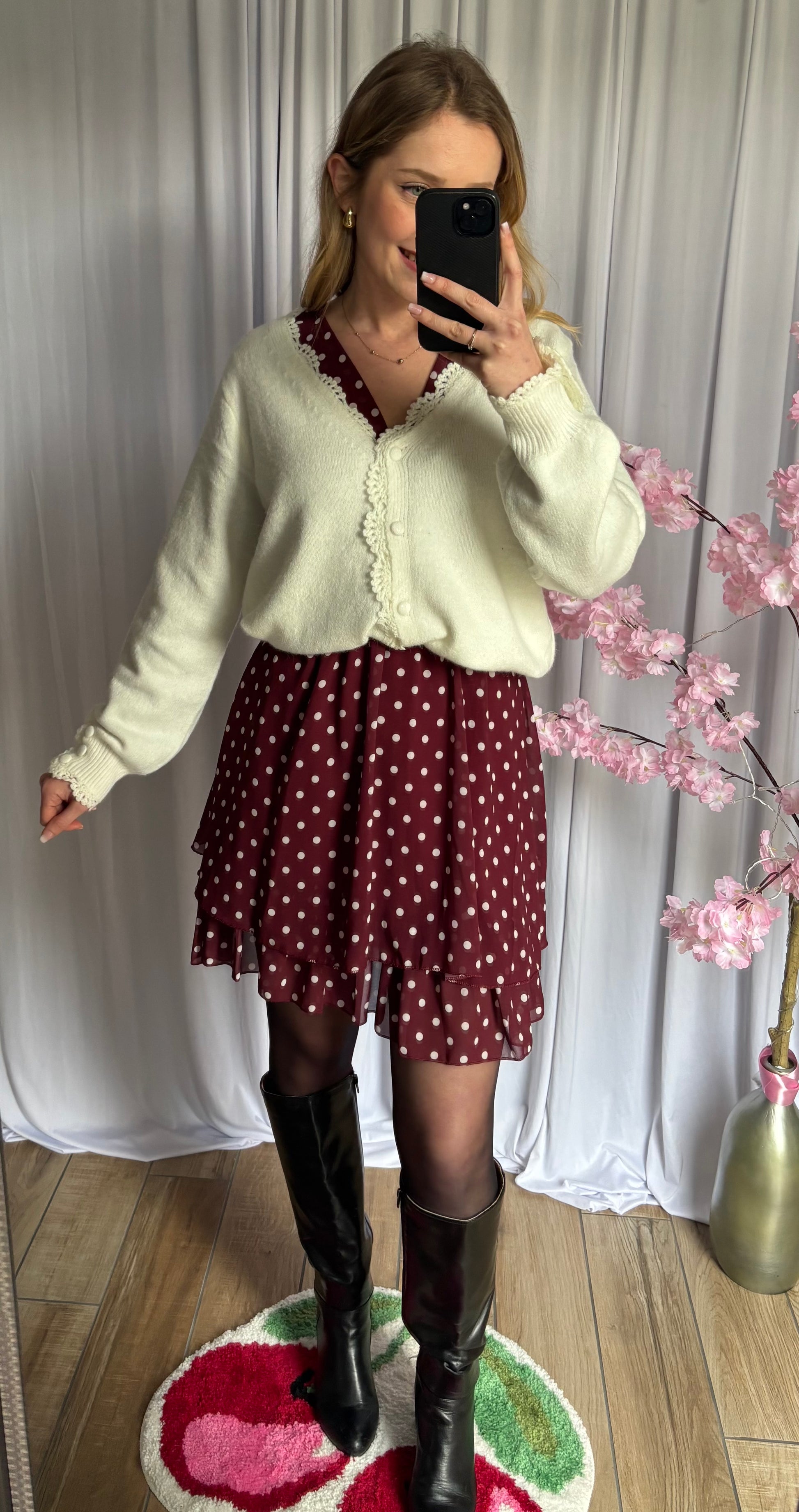 Robe fluide à pois blancs